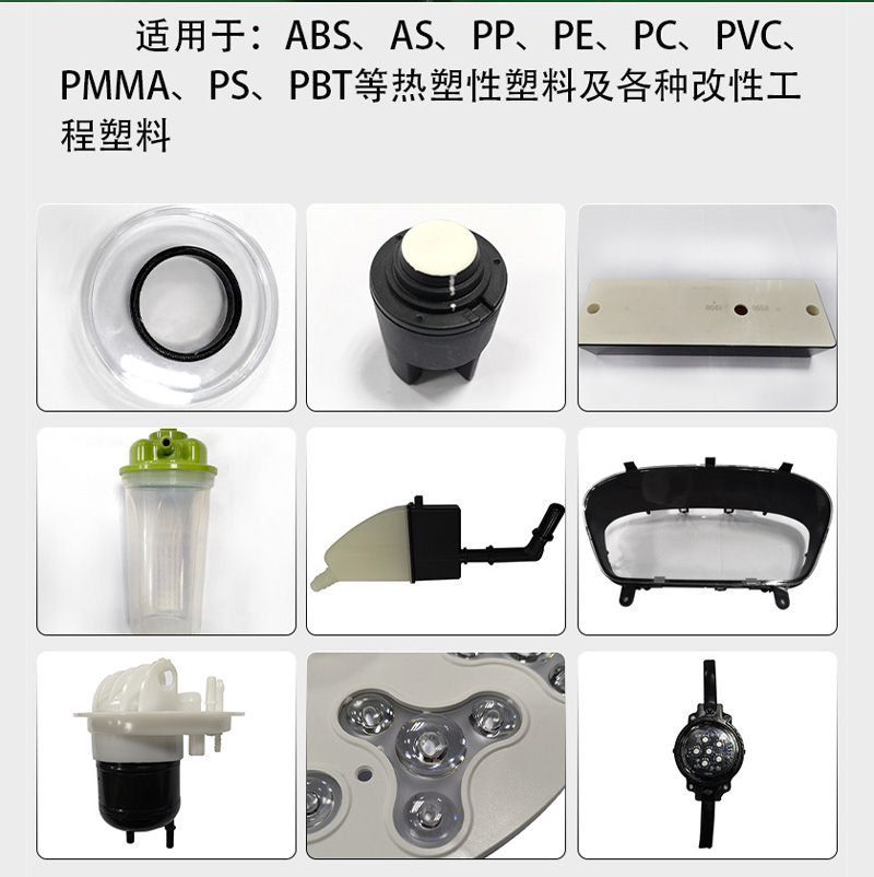 適用材料:ABS、AS、PP、PE、PA、PC、PVC、PMMA、PS、PBT、POM、COC等熱塑性塑料及各種改性工程塑料;
